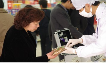 3月20日下午,人本超市(上陡门店)开展了“天天3.15,质量伴你行”的质量宣传展示活动。品管部检验检测人员现场对商品进行定性检测,并向大众传授商品质量辨别知识。工商部门与人本员工一同对过期商品进行现场销毁。(摘自3月22日《温州商报》城事新闻)